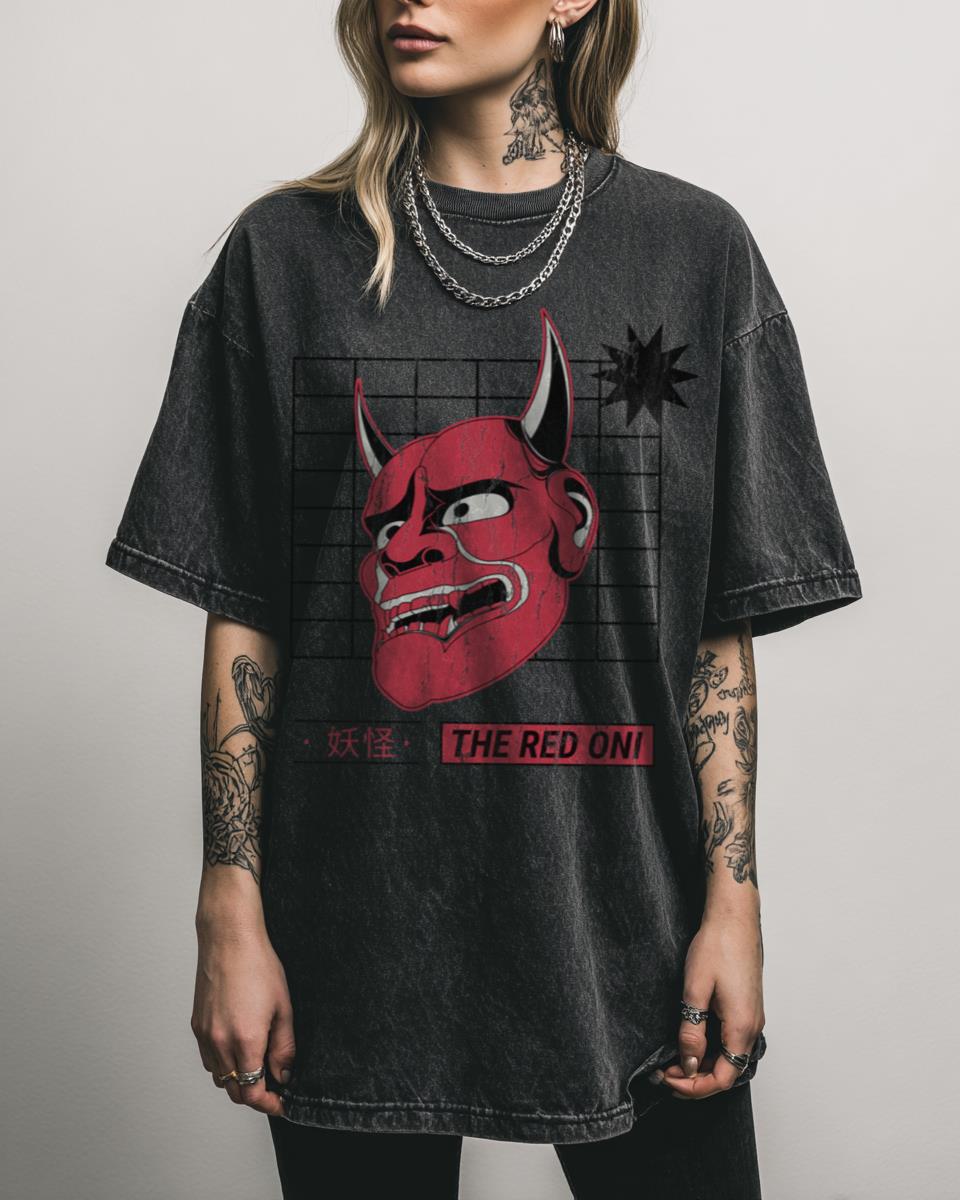 Intrigued by the powerful beings of Japanese folklore and mythology? Embrace the spirit of ancient Japan with ‘The Red Oni Yokai’ graphic tee. This captivating design features a fearsome red Oni demon, a central figure in Japanese supernatural tales and popular anime like Demon Slayer. It’s a striking piece for fans of traditional Japanese art,…