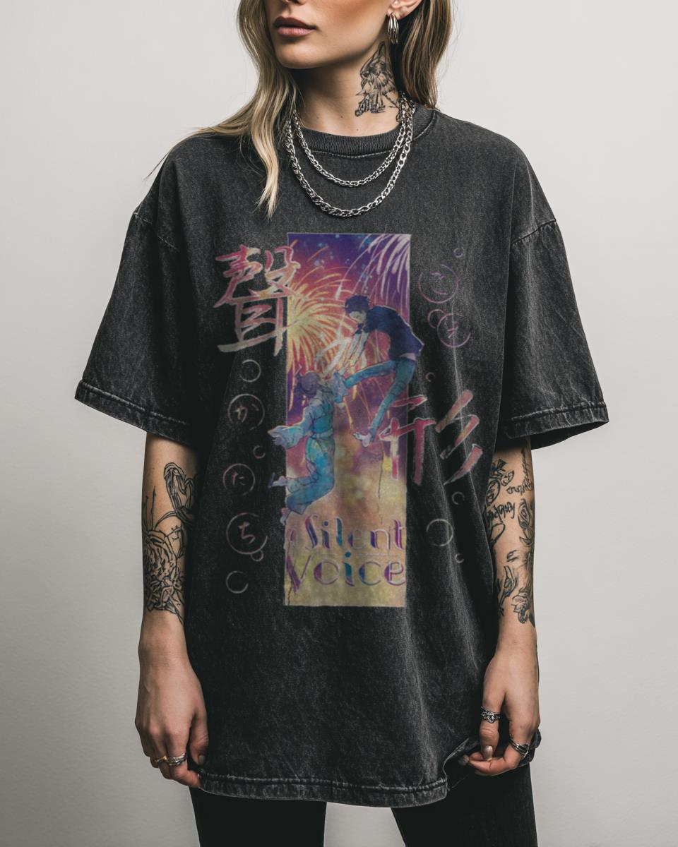 Why This Koe no Katachi T-Shirt is a Moving Tribute? Express your appreciation for a touching story with this Koe no Katachi T-Shirt, inspired by “A Silent Voice.” Featuring a fan-created typography graphic, this acidwash tee is a thoughtful piece for fans of the emotional anime film and its powerful message of love and understanding….