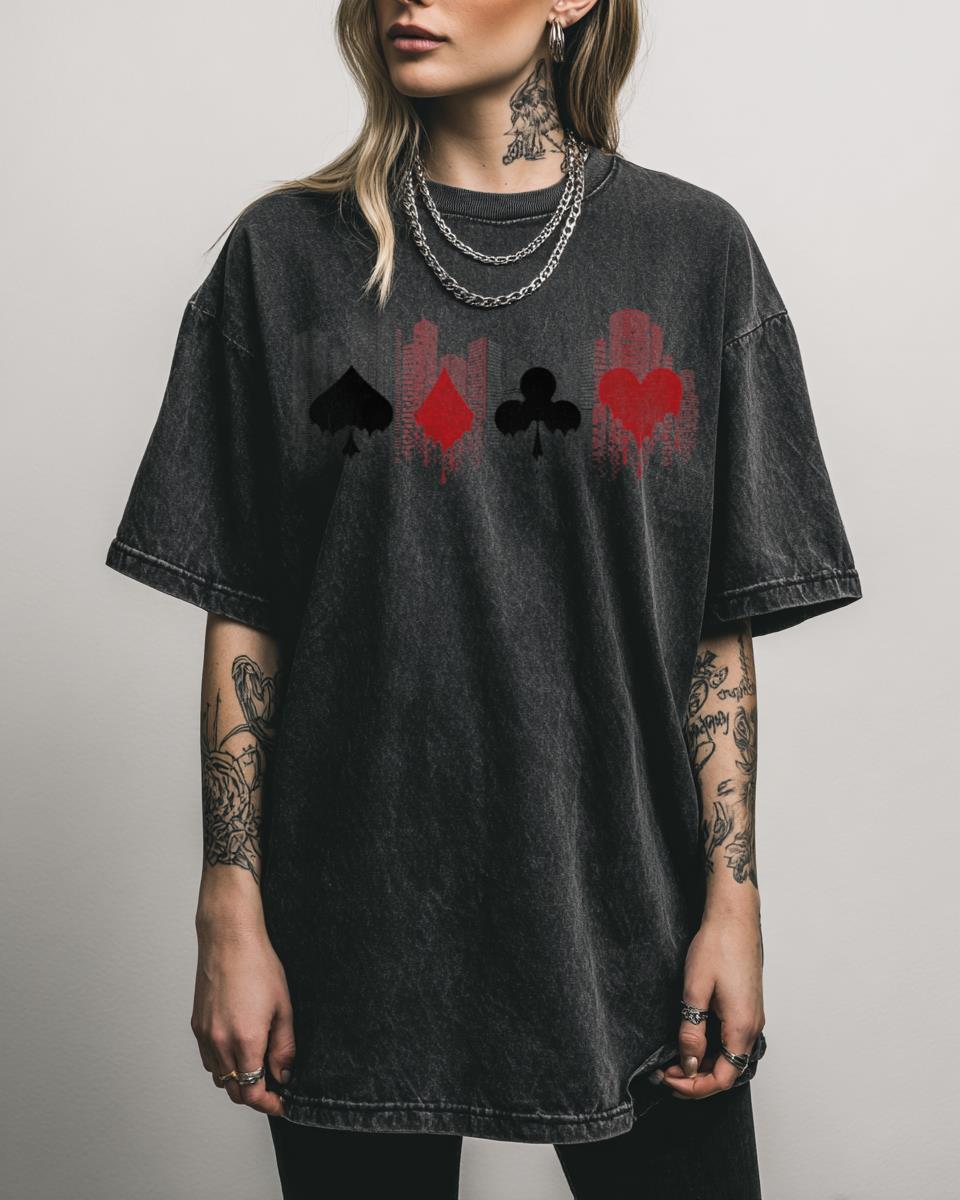 Ready to play the game of life or death in Borderland? Step into the thrilling world of Alice in Borderland with this graphic tee, featuring iconic playing cards and Tokyo buildings. This design captures the essence of the Japanese anime and live-action series, perfect for fans of Arisu, Usagi, Chishiya, and the intense survival games….