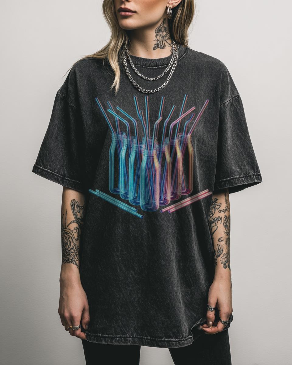 Looking for a unique, visually striking graphic tee? Dive into abstract aesthetics with the “Neon Water Straw: Large Transparent 3D on Dark Background” design. This intriguing artwork features a large, transparent 3D water straw rendered in vibrant neon colors against a dark backdrop, creating a captivating visual effect. It’s a modern and artistic piece for…