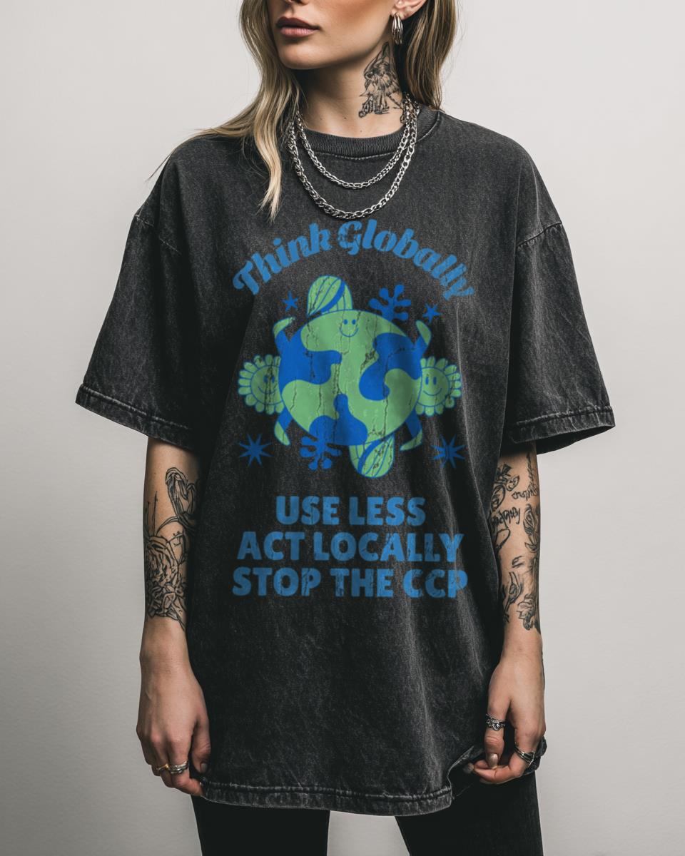 Are you passionate about global issues and local action? Make a powerful statement with the “Think Globally, Act Locally…. & Stop The CCP” design. This activist graphic promotes environmental sustainability and human rights, encouraging awareness about global impact and the importance of local efforts. Perfect for activists, environmentalists, and those committed to positive world change….