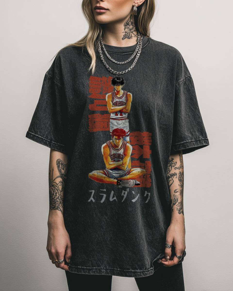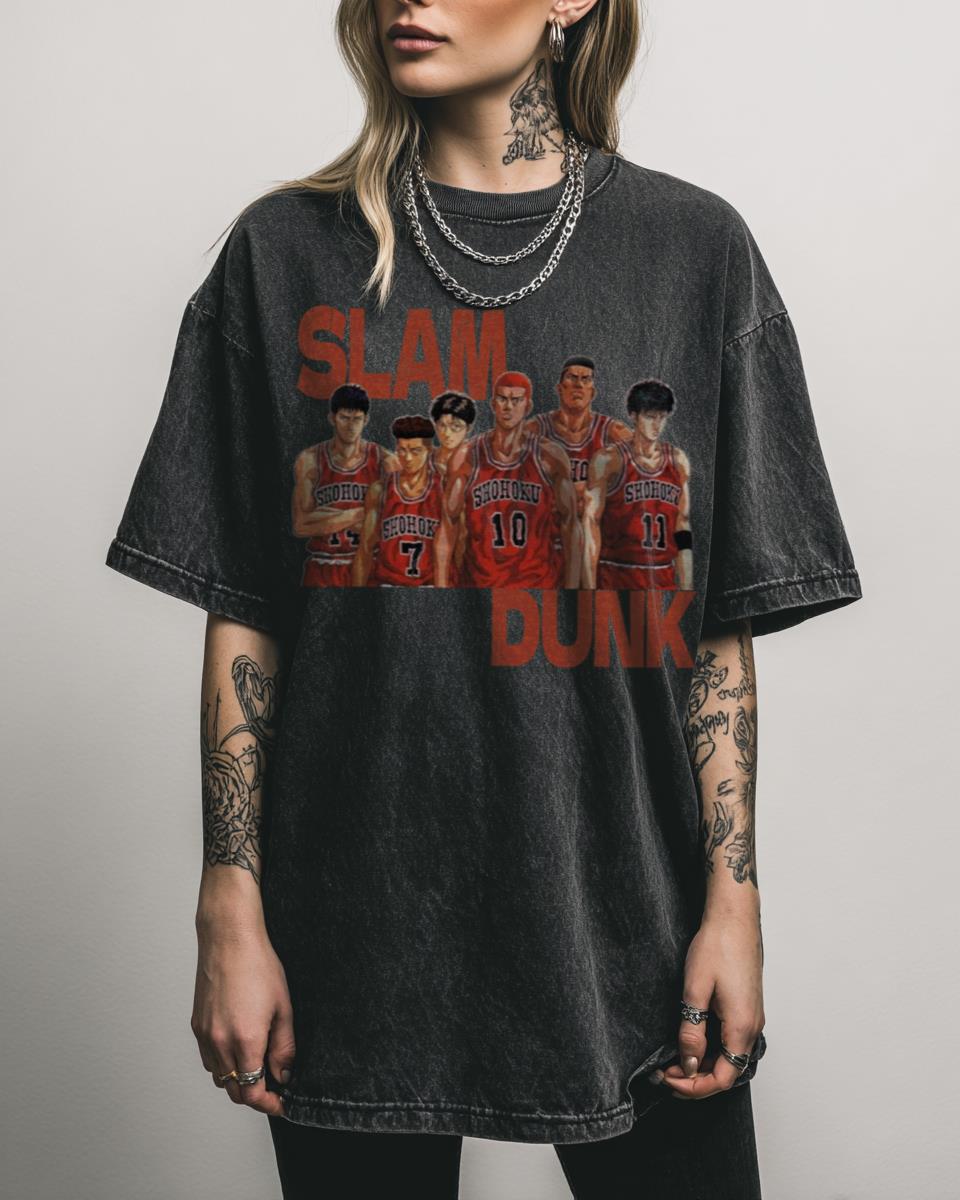 Are you a die-hard fan of classic 90s anime and high-flying basketball action? Step onto the court with nostalgia in this ‘Slam Dunk Character’ graphic T-shirt, celebrating the iconic 90s anime and manga series. This design features beloved characters from the legendary Slam Dunk, perfect for fans of anime sports and retro basketball culture. Why…
