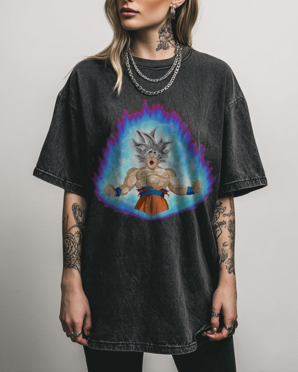 Ready to master the legendary power of Ultra Instinct like Goku? Channel the incredible strength and serenity of Goku’s Ultra Instinct form with this captivating fan art graphic tee. This design beautifully depicts the iconic transformation from Dragon Ball Super, making it a must-have for any devoted fan of the series and its legendary Saiyan…