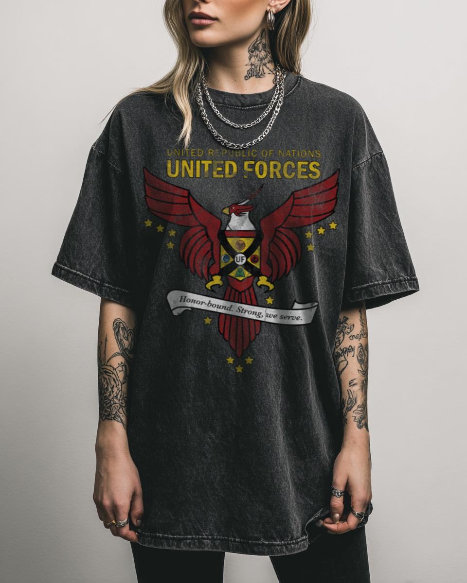 Are you a loyal supporter of the United Forces and the world of Avatar? Proudly display your allegiance with this “United Forces Insignia” graphic tee, a symbol of unity and peace from The Legend of Korra. This design is perfect for fans of the Avatar universe, celebrating the combined strength of the Air Nomads, Earth…