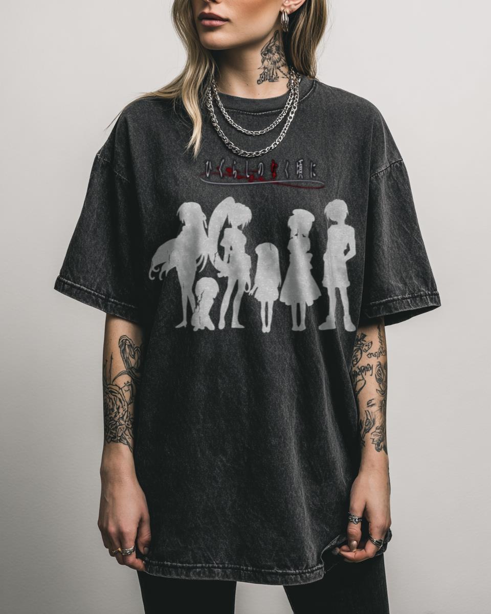 Dare to revisit the chilling mysteries of Hinamizawa? Step into the unsettling world of “Higurashi no Naku Koro ni” with this evocative T-shirt. This design pays homage to the iconic horror anime and manga series, capturing the eerie atmosphere and memorable characters like Rika, Rena, and Keiichi. Perfect for fans who appreciate psychological thrillers and…