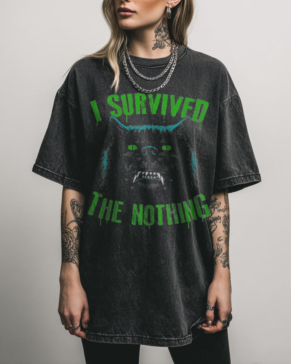 Did you survive ‘The Nothing’ and believe in the power of imagination? Relive the magic of a timeless fantasy with this ‘I Survived The Nothing’ graphic tee, inspired by The Neverending Story. This retro 80s design is perfect for fans of the classic movie and book, celebrating Bastian, Atreyu, and the beloved Luck Dragon, Falkor….