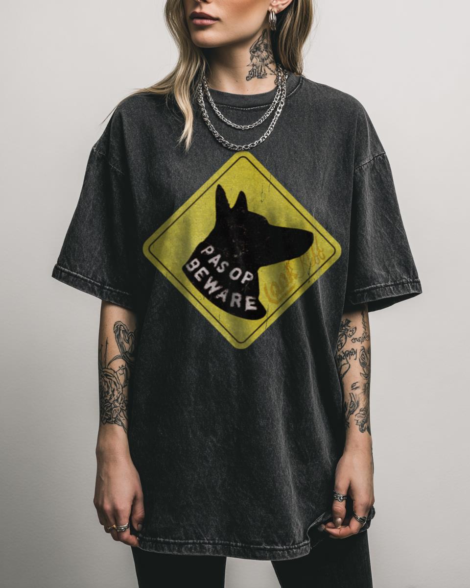 Show your South African pride with a touch of retro warning! This “Pasop / Beware” design is a nostalgic nod to classic South African security signs, featuring a bold dog graphic. It’s a unique piece that blends local culture with vintage 80s and 90s aesthetics, perfect for anyone from Durban or those who appreciate “kiff”…