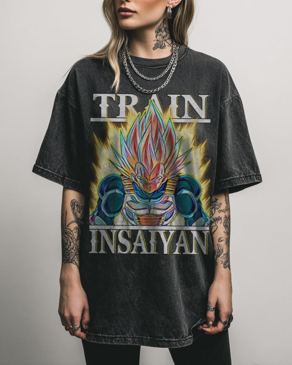 Channel your inner Prince of Saiyans with this epic ‘Train Insaiyan’ tee featuring Scouter Vegeta! This design cleverly combines the iconic ‘Train Insaiyan’ phrase with a classic image of Vegeta wearing his scouter, perfect for any Dragon Ball Z enthusiast. It’s a great way to express your dedication to both fitness and anime with a…