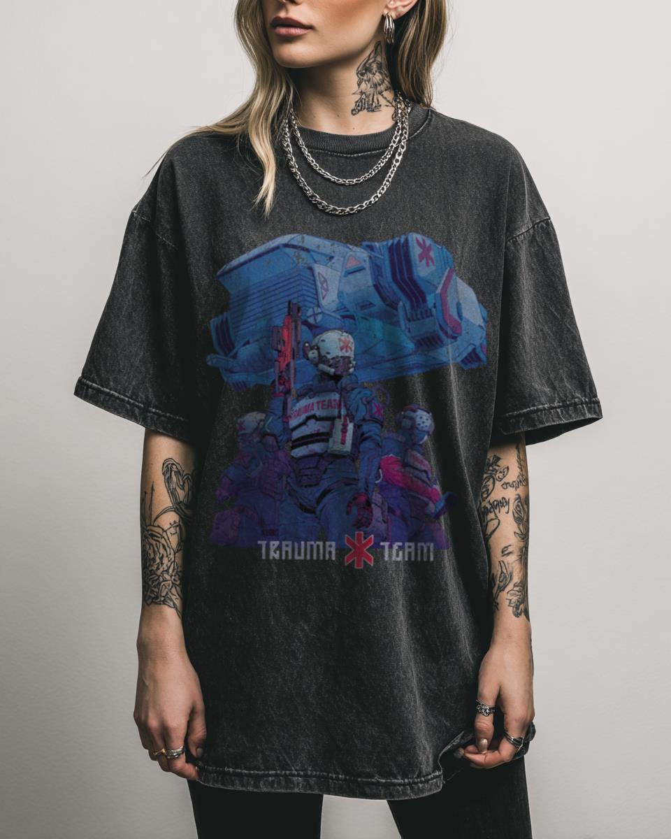 What Makes This Cyberpunk Trauma Team Tee a Must-Have? Immerse yourself in the dystopian world of Night City with this striking Trauma Team Cyberpunk T-shirt. Featuring a design inspired by the iconic medic corporation from the popular videogame, this acidwash graphic tee is perfect for fans of futuristic sci-fi and gaming culture. Why Gamers Will…