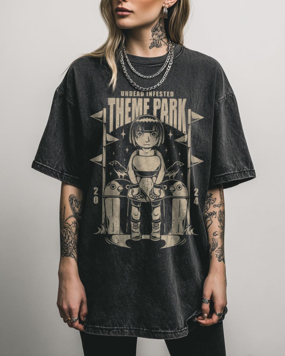 Ready to face the terror of a retro survival horror game? Step into the eerie world of ‘Crow Country’ with our ‘Undead Infested Theme Park’ graphic tee. This design captures the chilling atmosphere of the indie game, featuring monsters and Mara Forest, perfect for gamers who love nostalgia and classic survival horror. Why You’ll Love…