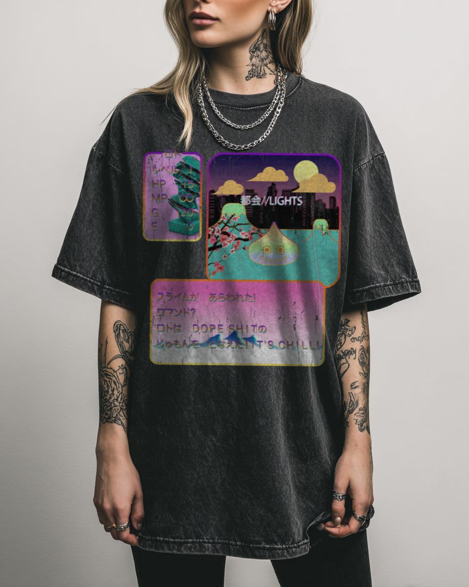 Ready to embark on a chill quest through retro gaming nostalgia? This ‘C H I L L Q U E S T’ design perfectly blends the iconic imagery of Dragon Quest with a smooth vaporwave aesthetic. Featuring the beloved Slime character in a laid-back, retro-futuristic style, it’s a must-have for JRPG fans and anyone who…