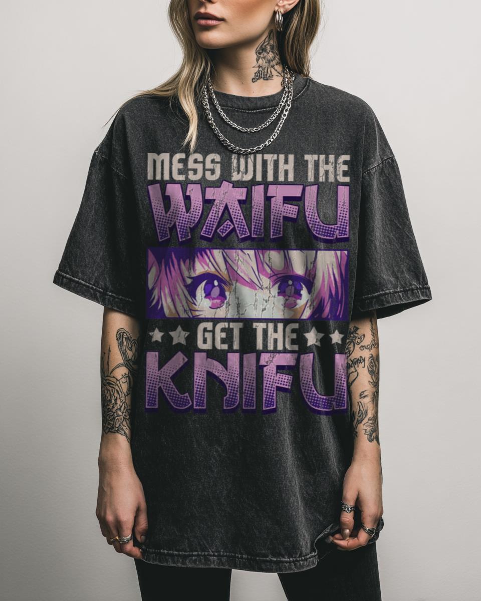 Declare your dedication to your waifu with this hilarious and adorable anime tee! This “Mess With The Waifu Get The Knifu” design features a cute, kawaii anime girl, delivering a clear message to anyone who dares to mess with your beloved waifu. It’s a funny and iconic meme for senpai-noticing otaku and weebs who appreciate…