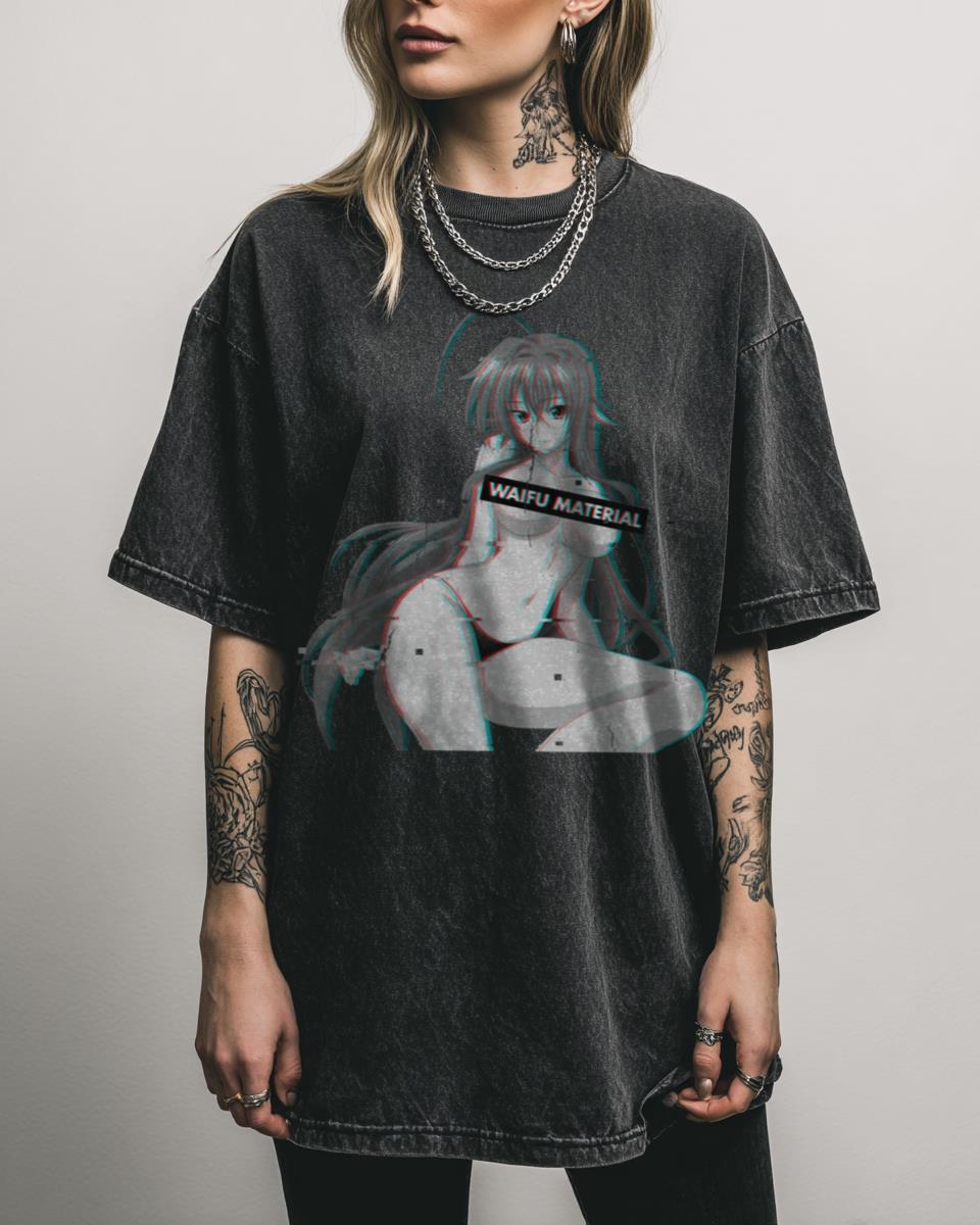 Declare your ultimate waifu with this bold and stylish anime design! This “Rias Gremory Waifu Material” graphic celebrates the iconic “Crimson-Haired Ruin Princess” from “High School DxD.” It’s a statement piece for fans who appreciate Rias’s beauty, power, and her central role in the beloved supernatural harem series, alongside characters like Akeno, Koneko, and Issei….