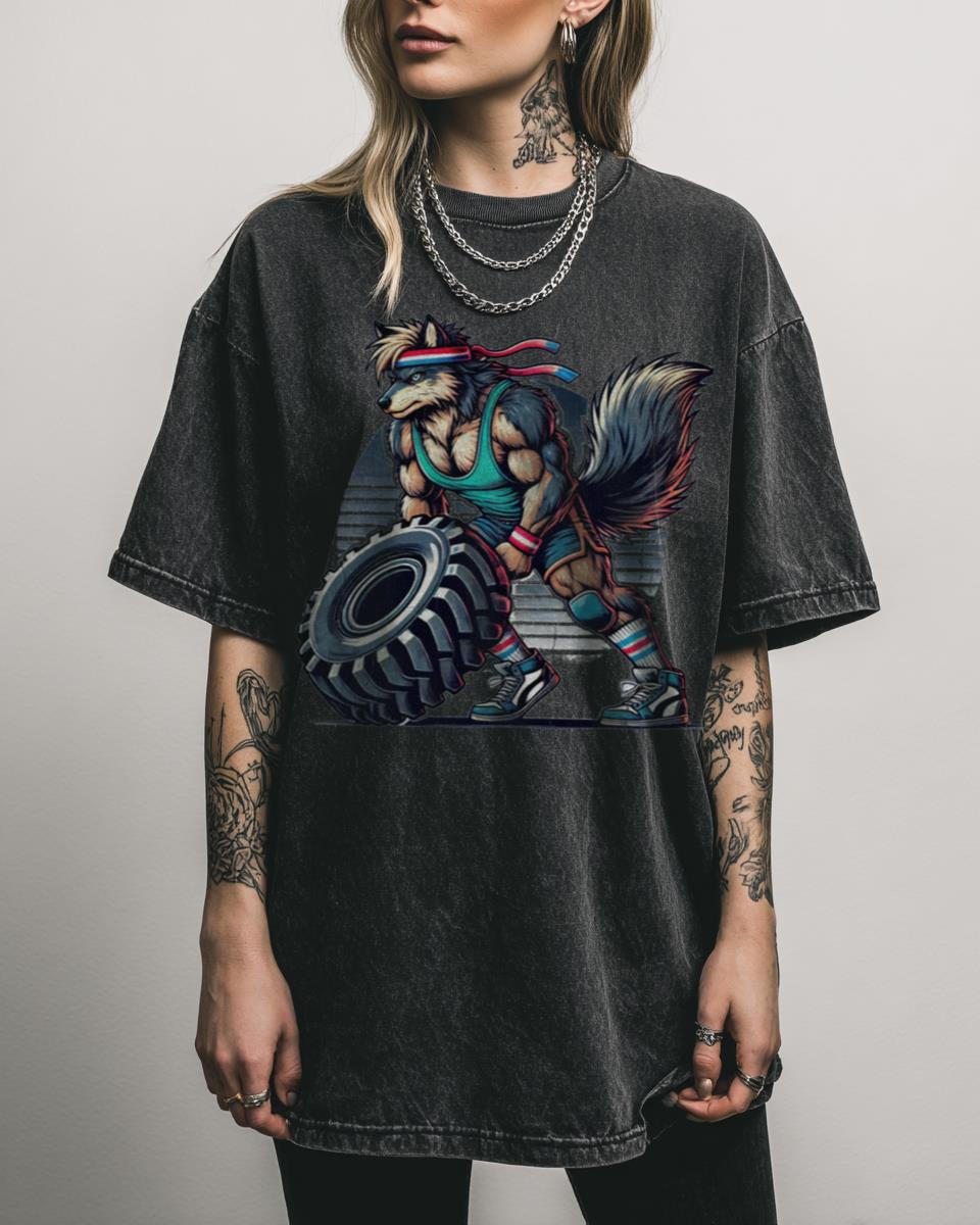Ready to unleash your inner beast and conquer your fitness goals? Power up your workout with this ‘Wolf in Crossfit Mode’ design, blending 80s anime aesthetics with intense gym motivation. Featuring a muscular wolf engaged in tire training and crossfit, this graphic embodies strength, beast mode, and a retro fitness vibe. Perfect for gym enthusiasts…