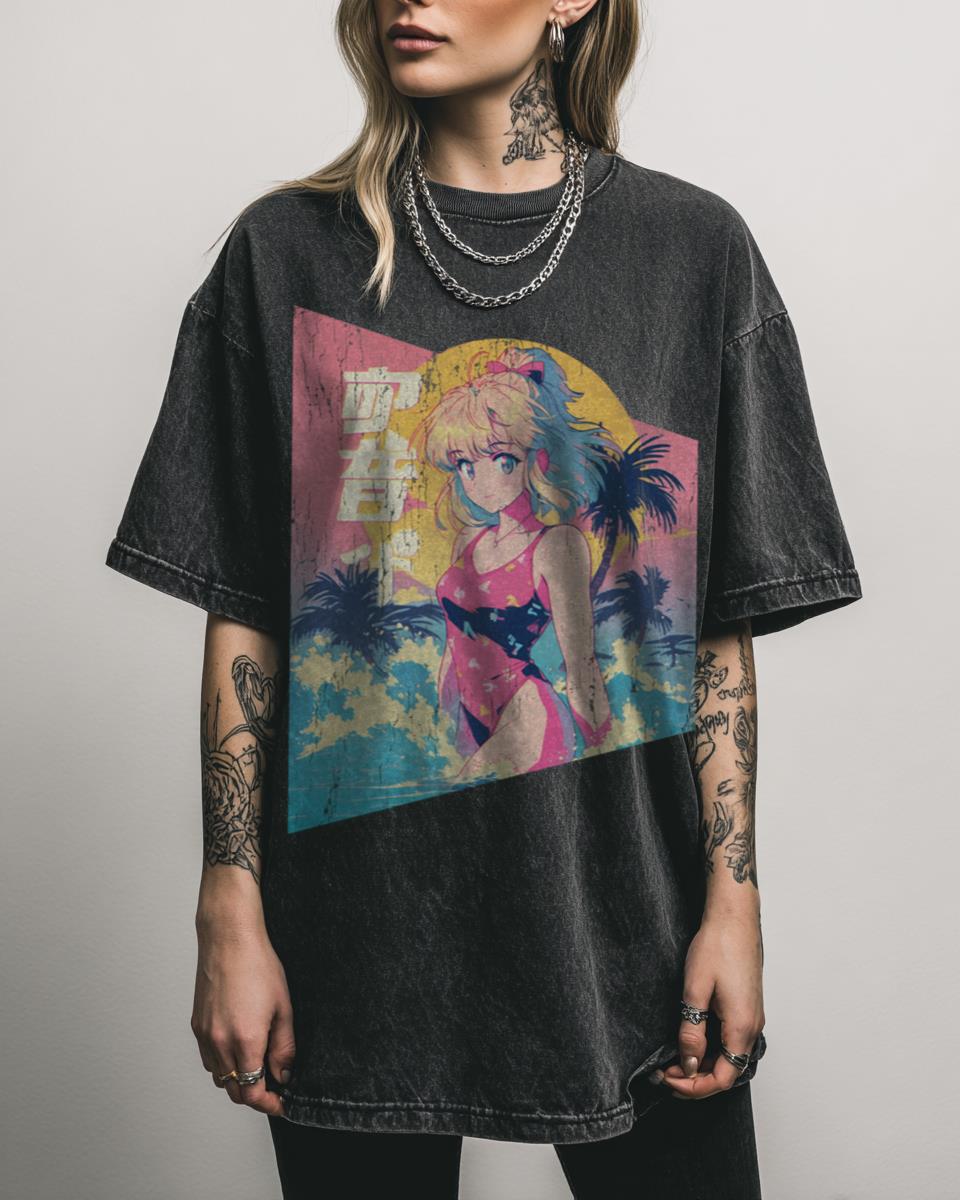Craving a blast from the past with a touch of anime charm? Indulge in pure nostalgia with this delightful retro design, showcasing a cute anime beach girl embodying the vibrant spirit of the 1980s. Her bright summer colors and the distinctive Japan City Pop aesthetic evoke coastal beauty and a sense of timeless summer fun….