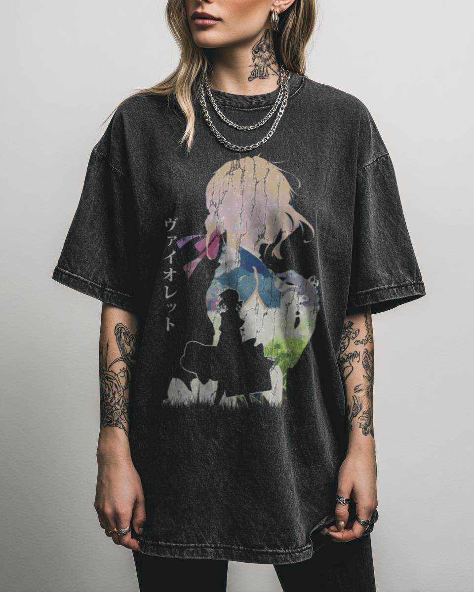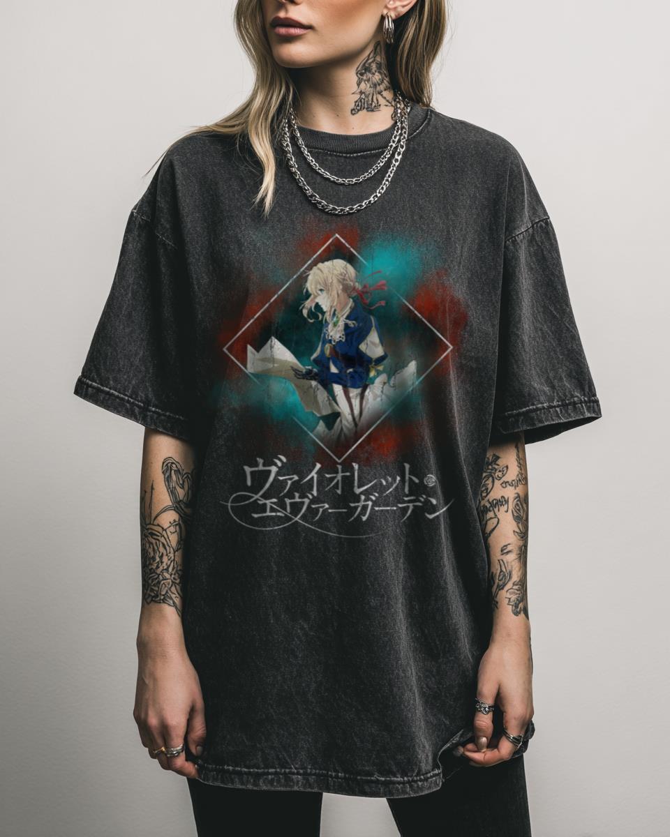 Are you captivated by the poignant beauty and emotional depth of Violet Evergarden? Celebrate the iconic Auto Memory Doll, Violet Evergarden, with this elegant anime T-shirt. This design pays tribute to the beloved character from the critically acclaimed Kyoani series and manga, known for its stunning animation and heartfelt storytelling. A perfect piece for fans…