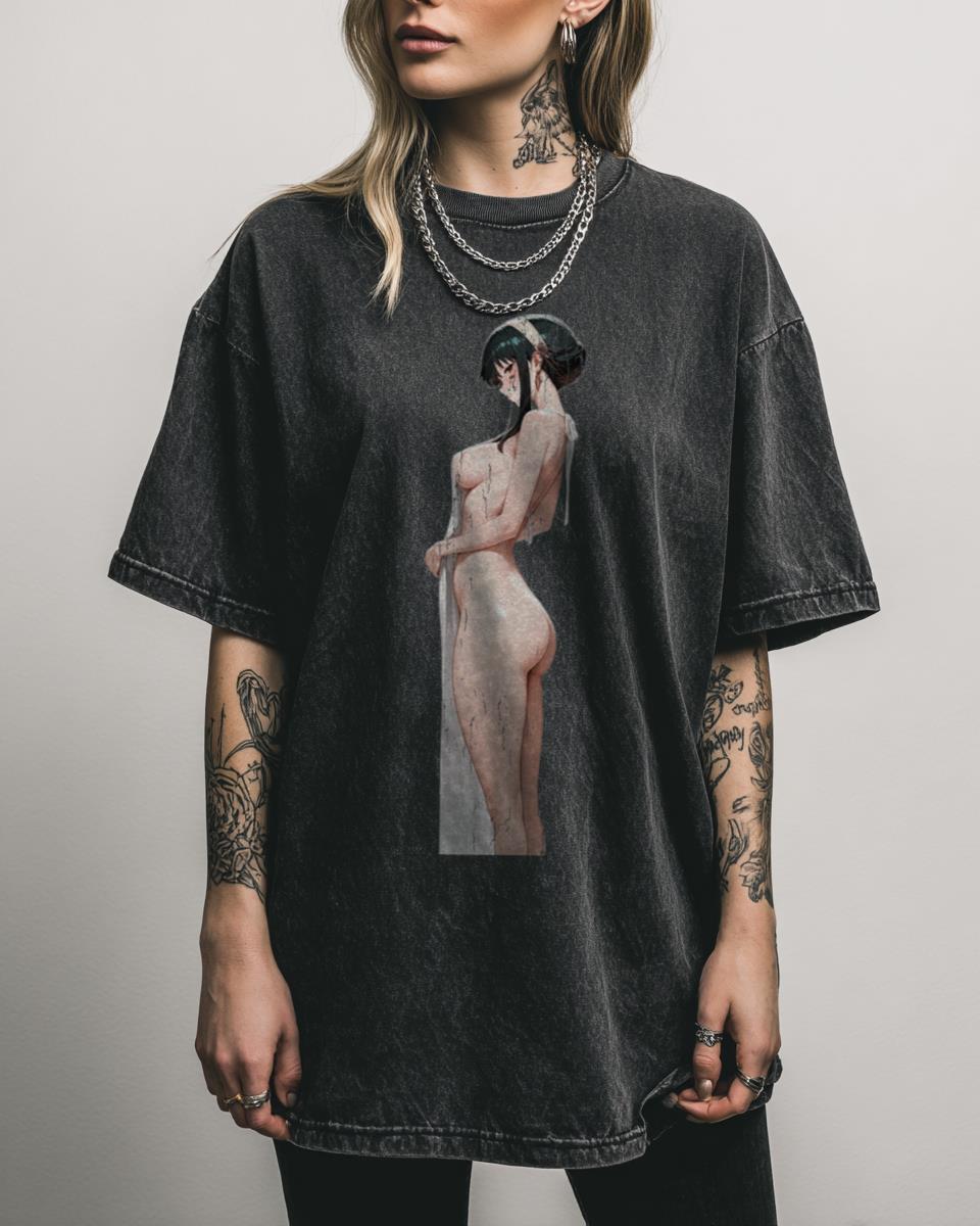 Are you a daring fan of Spy x Family and the enigmatic Yor Forger? Embrace the allure of the Thorn Princess with this ‘Yor Forger Lewd Waifu’ graphic tee. This design features a captivating portrayal of Yor Briar, blending the popular waifu aesthetic with a mature, fan-art style. Perfect for adult fans of Spy x…