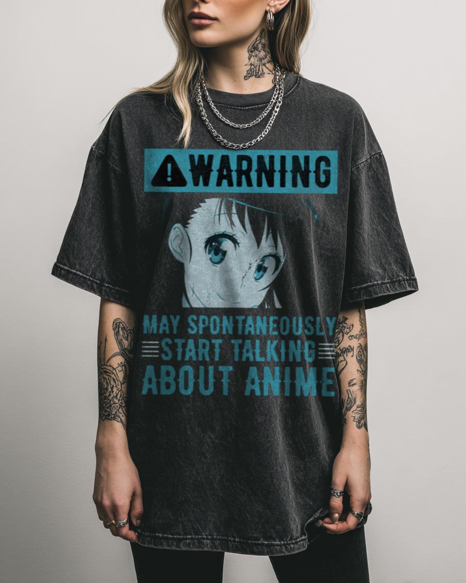 Do you find yourself bursting into anime discussions at any moment? This humorous ‘Warning May Spontaneously Start Talking About Anime’ T-Shirt is your perfect self-declaration! Featuring bold turquoise blue lettering, it’s designed for true anime lovers, manga readers, and fans of Japanese pop culture. Let the world know your passion without saying a word… until…