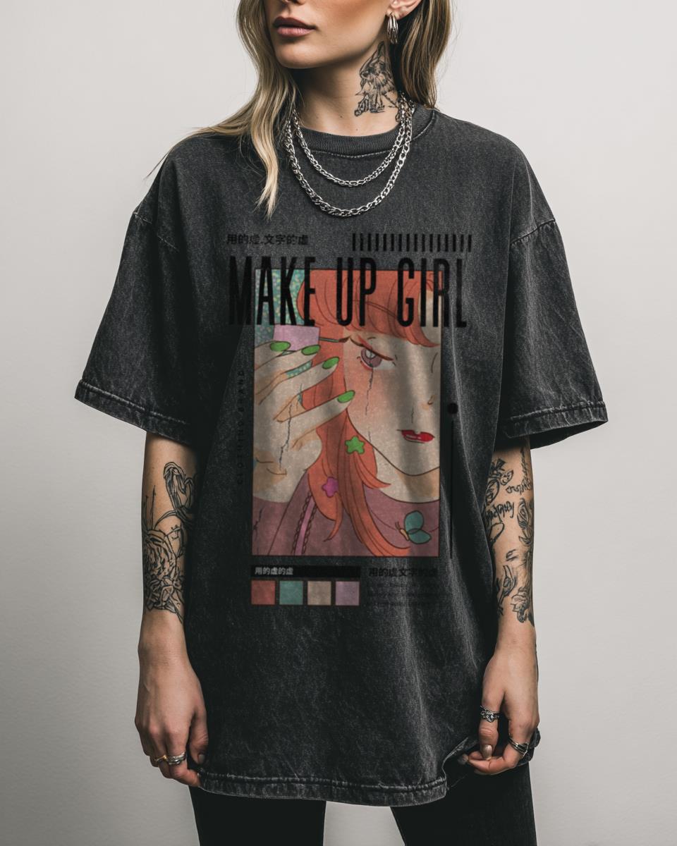 Unveil Your Style with This Anime Girl Makeup Aesthetic Tee! Embrace your unique aesthetic with this Anime Girl Makeup Aesthetic Tee, featuring a vibrant, fan-created graphic inspired by Tumblr fashion and colorful anime art. This 100% heavyweight cotton tee is perfect for those who love Japanese pop culture and expressive styles. The black acidwash finish…