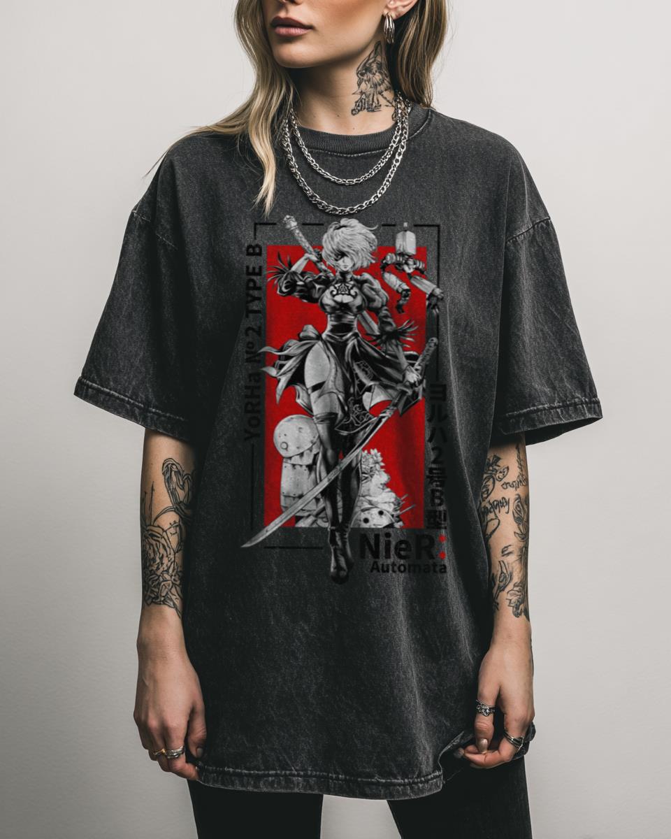 Are you a dedicated fan of the critically acclaimed action RPG, Nier Automata? Immerse yourself in the dystopian beauty of Nier Automata with this striking T-shirt, featuring iconic elements from the beloved game. This design pays homage to the android protagonists and the philosophical themes that make Nier Automata a masterpiece. Perfect for gamers who…
