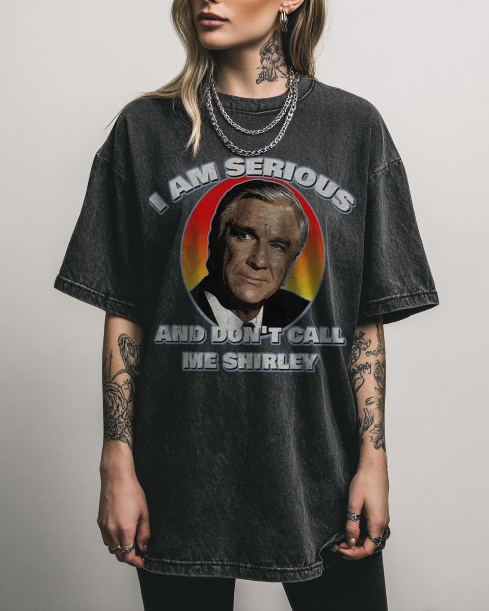 Searching for the perfect gift for a classic comedy fan? Celebrate the unparalleled comedic genius of Leslie Nielsen with this hilarious graphic t-shirt. Featuring references to his iconic roles like Frank Drebin from ‘The Naked Gun’ and Ted Striker from ‘Airplane!’, this design is a must-have for anyone who loves timeless humor and unforgettable movie…