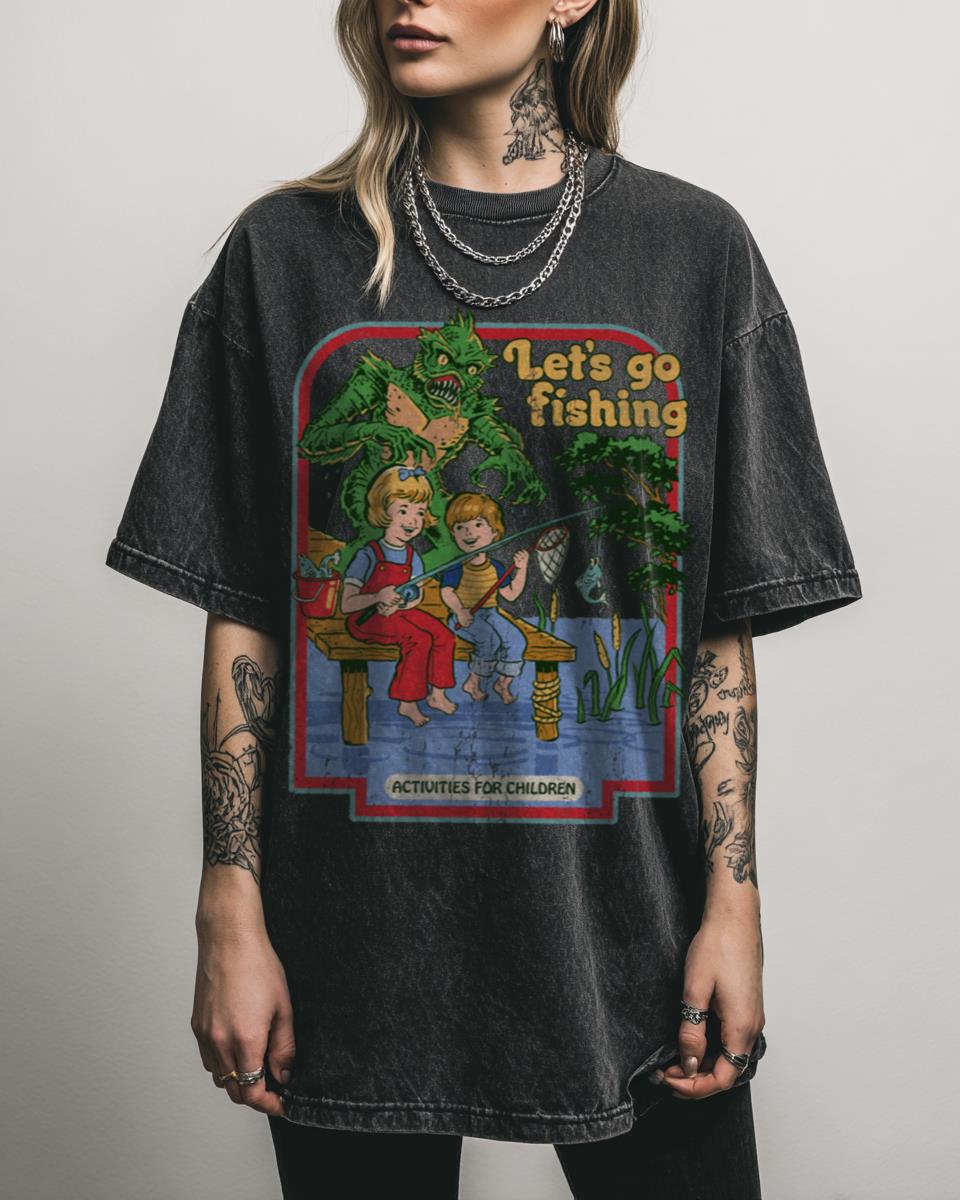 Ready for a fishing trip with a monstrous twist? This ‘Let’s Go Fishing’ design playfully combines a classic outdoor activity with a beloved horror icon. Featuring the Creature From The Black Lagoon, or Gill-Man, in a humorous, vintage-inspired style, it’s perfect for fans of retro horror movies and funny, unique graphic tees. Why You’ll Love…