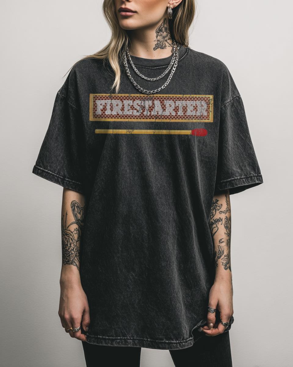 Ready to ignite your inner rebel with a powerful statement piece? Unleash your fiery spirit with this “Firestarter” graphic, featuring a striking matchbox design. Inspired by 90s electronic punk music and rebellious energy, this tee captures the essence of a true troublemaker. It’s a bold visual representation of igniting change and challenging the status quo,…