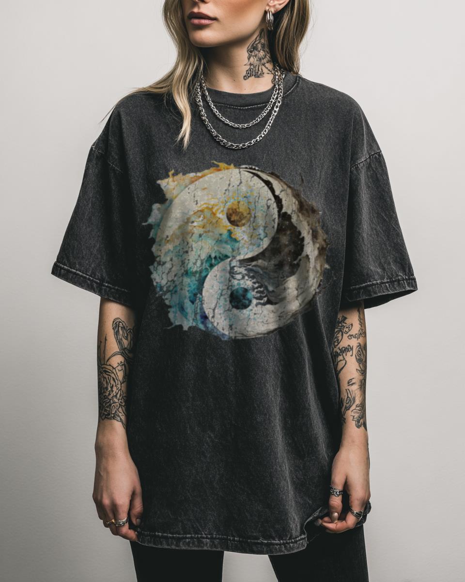 What Makes This Yin Yang Clouds T-Shirt a Symbol of Harmony? Embrace balance and harmony with this captivating Yin Yang Clouds T-Shirt, featuring a colorful, abstract graphic. This acidwash tee reimagines the ancient Yin Yang symbol amidst vibrant clouds, making it a unique piece for those who appreciate spiritual art and symbolic designs. Key Features…