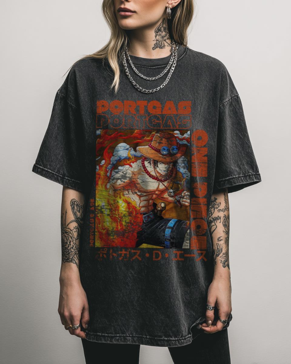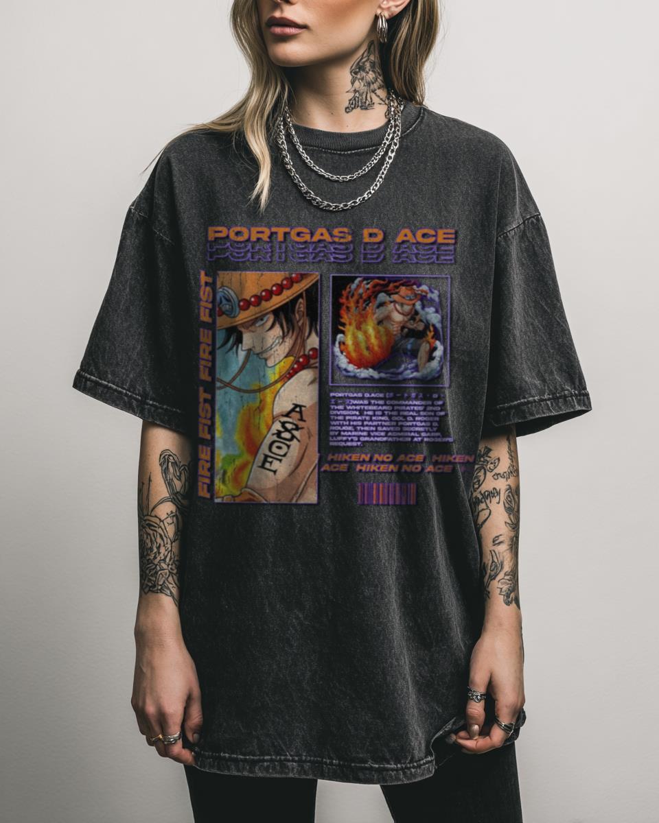 Why is the “Portgas D Ace” T-Shirt a Must-Have for One Piece Fans? Ignite your passion for adventure with this “Portgas D Ace” T-Shirt, featuring a powerful, fan-created graphic of the beloved character from One Piece. This black acidwash graphic tee is perfect for showing your admiration for Ace, Luffy, and the world of pirates….
