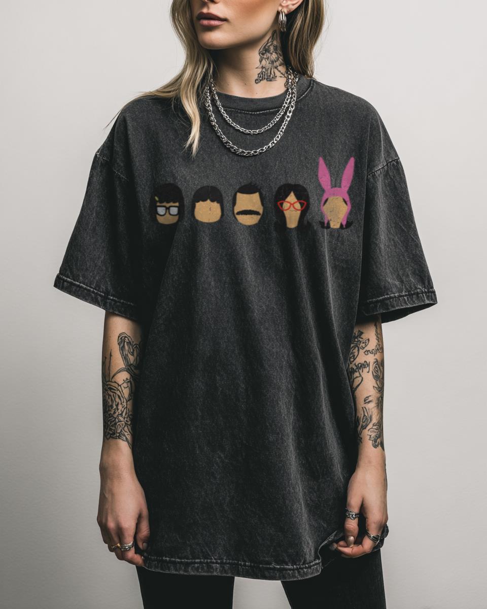 Are you a superfan of the most delightfully dysfunctional family on TV? Celebrate your favorite animated family with ‘The Belchers’ cartoon T-shirt! Featuring Bob, Linda, Tina, Gene, and Louise from the beloved show Bob’s Burgers, this design captures the hilarious and quirky essence of the Belcher clan, perfect for any devoted viewer. Why You’ll Love…