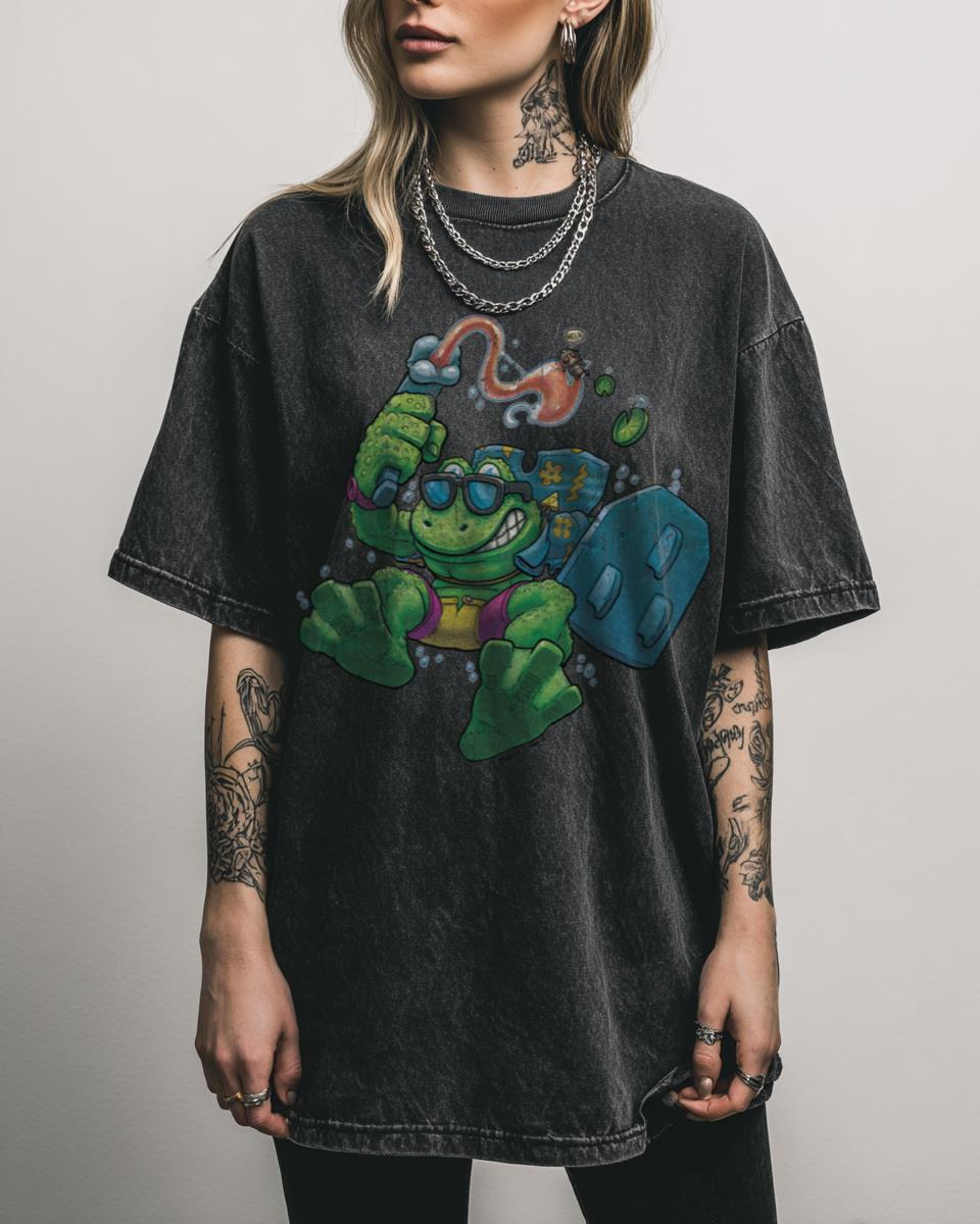Ready to jump back into the radical world of 90s cartoons and mutant heroes? Leap into action with this “Genghis Frog” T-Shirt, a fantastic tribute to the iconic Punk Frogs from Teenage Mutant Ninja Turtles! This design celebrates the cool, mutant frog warrior, Genghis Frog, who brought an extra dose of fun to the TMNT…