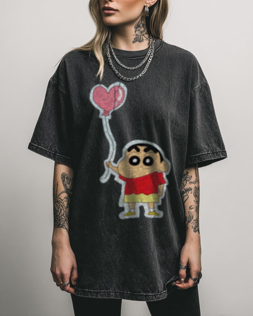 Are you a fan of the mischievous and adorable Crayon Shin Chan? Spread joy with this ‘Crayon Shin Chan Heart Balloon’ graphic tee! This super cute and kawaii design features Shin Chan holding a charming heart balloon, perfect for fans of the beloved Japanese and Korean anime. It’s a heartwarming and playful piece that captures…