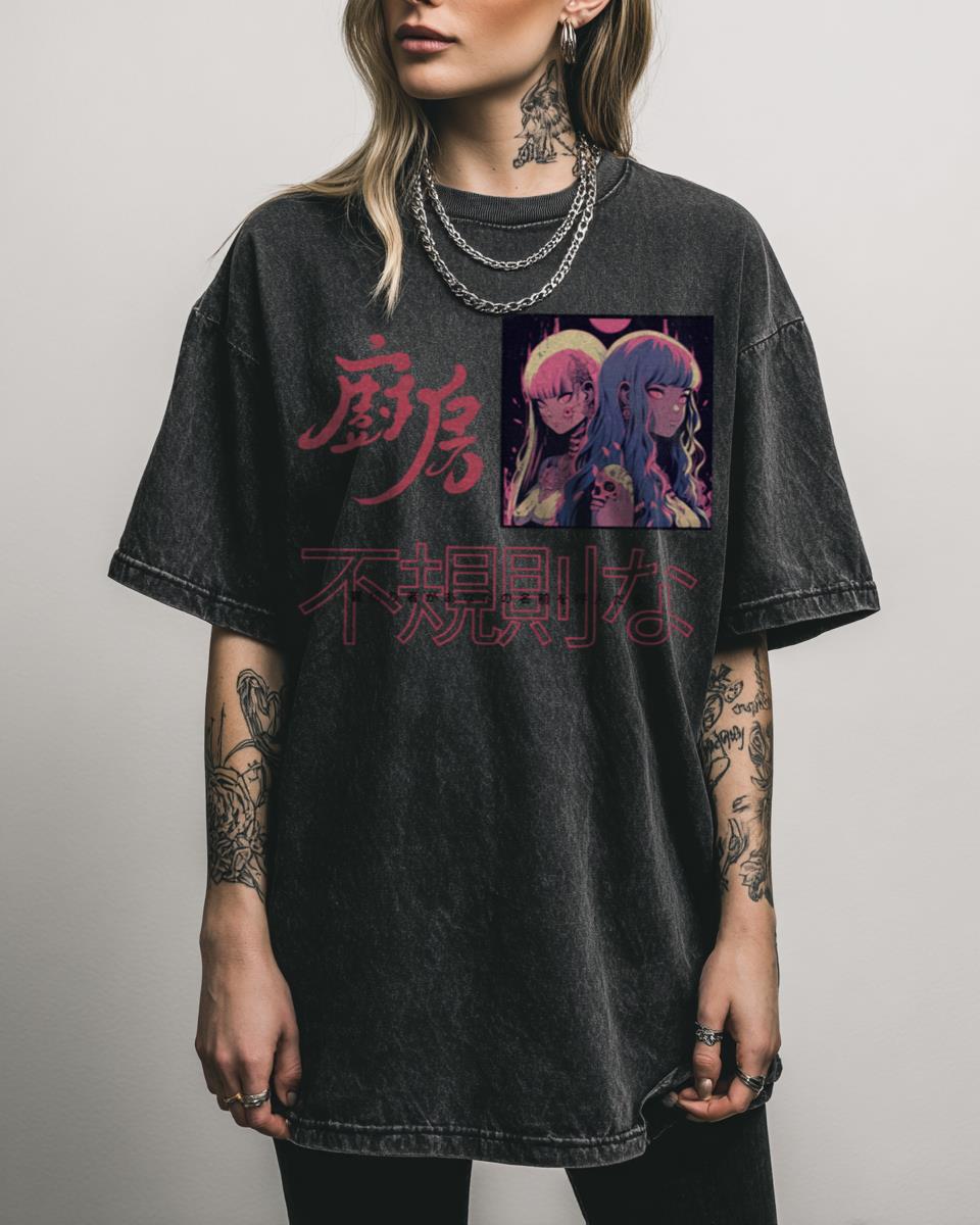 Captivated by the unique allure of Japanese art and vaporwave aesthetics? Discover this enchanting ‘Pink Twin Anime Girl’ design by karpuz-design, a stylized piece that beautifully merges traditional Japanese elements with a modern vaporwave vibe. Featuring twin Asian girls adorned with kanji, this artwork is a perfect choice for anyone who loves manga, anime, and…