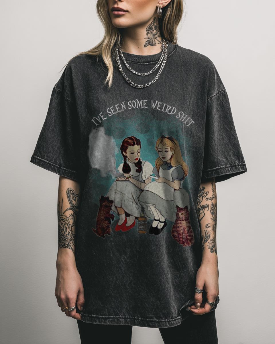Ever wondered what happens when Alice meets Dorothy in Wonderland? Step into a whimsical world with this ‘Alice And Dorothy Love Seen Some Weird Alice Wonderland Vintage’ design. Bursting with colorful animals, vibrant flowers, and a positive retro vibe, this graphic is a cool and trendy take on classic fairy tales. Perfect for those who…