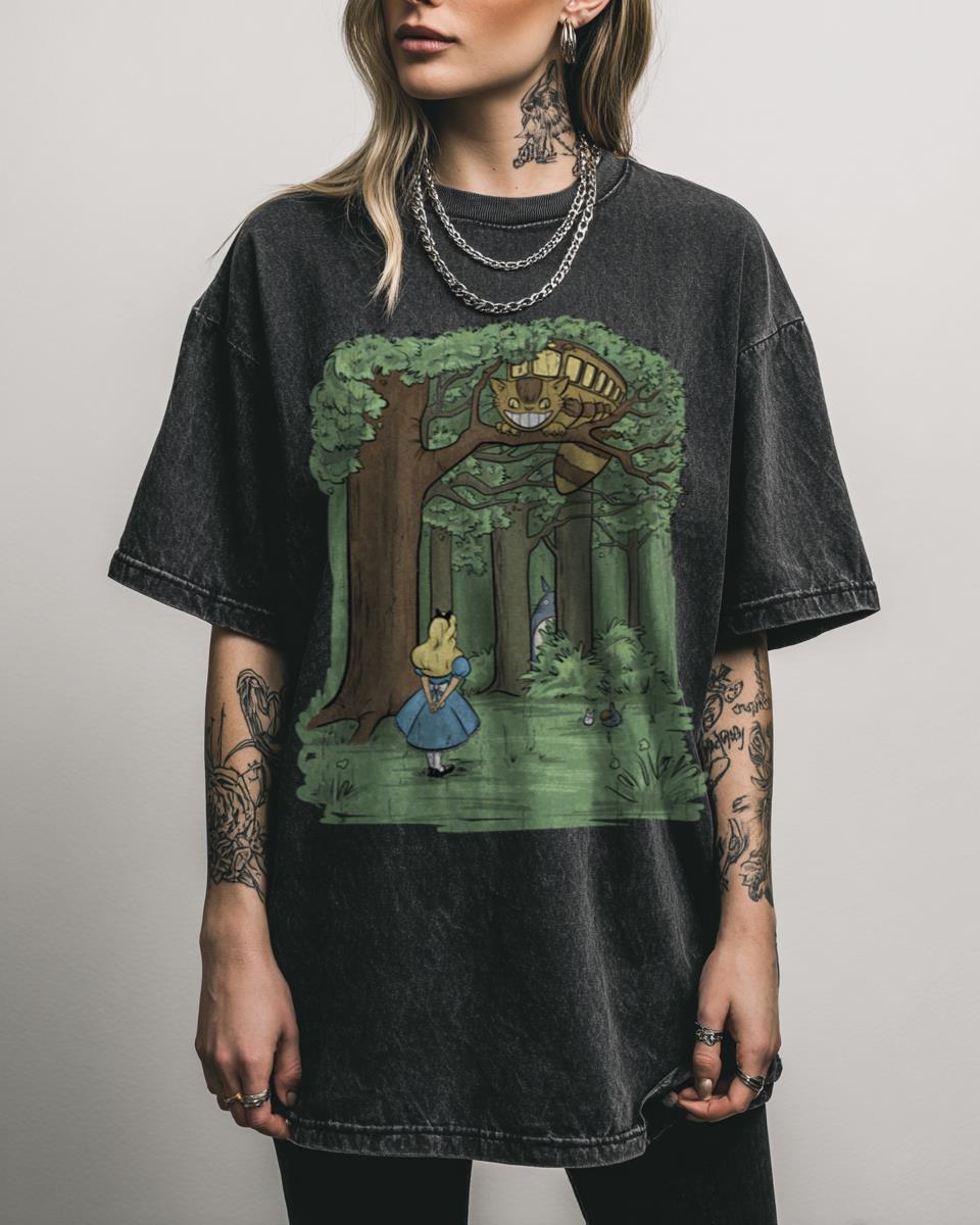 Discover a magical blend of two beloved fantasy worlds! This enchanting “My Neighbor in Wonderland” design cleverly mashes up the whimsical charm of Studio Ghibli’s My Neighbor Totoro with the fantastical journey of Alice in Wonderland. Perfect for anime fans, fantasy lovers, and those who appreciate unique crossover art, this graphic creates a delightful new…