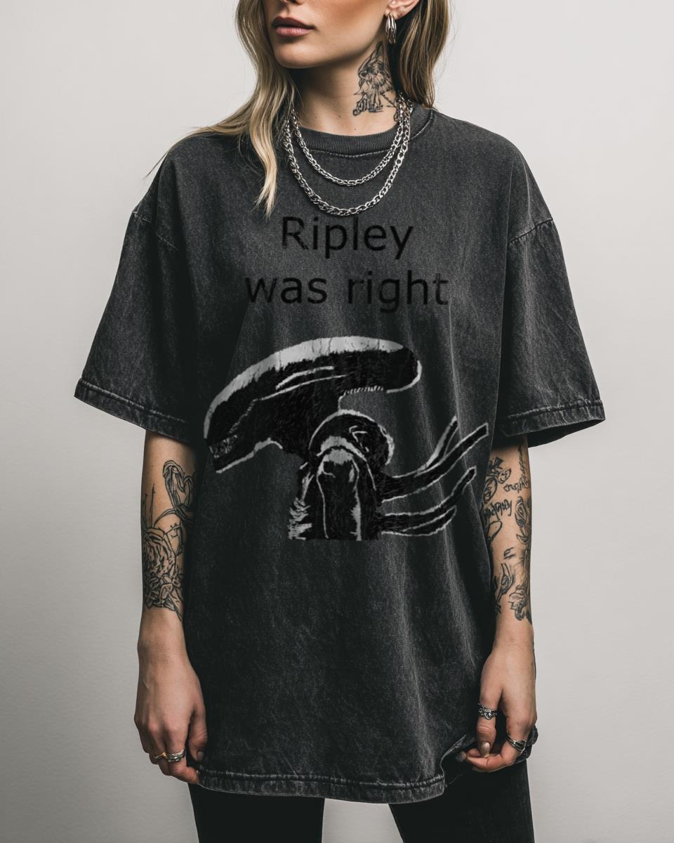 Do you believe Ellen Ripley was the ultimate sci-fi hero, always ahead of the curve? Make a bold statement with this ‘Ripley Was Right’ design, a tribute to the legendary Ellen Ripley from the Alien franchise. This graphic captures the essence of her iconic warning about the terrifying Xenomorphs, celebrating her intelligence and resilience. A…