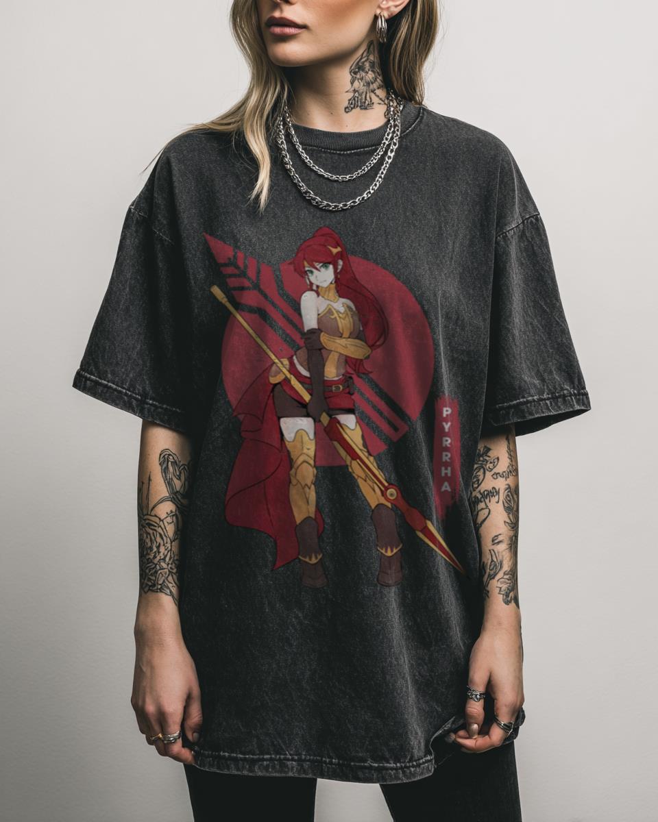 Why This Pyrrha Nikos RWBY Anime Tee is a Fan Favorite? Show your admiration for the invincible huntress with this Pyrrha Nikos RWBY Anime Influenced Graphic Tee. This fan-created design captures the essence of the beloved character from the web series, presented on a stylish black acidwash shirt. Stand Out with This RWBY Fan Art…