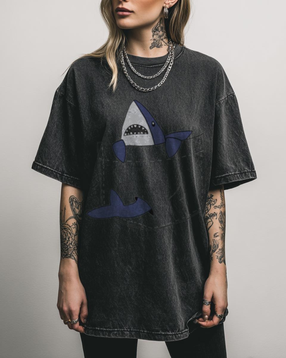 What Makes This Blue Shark Pocket T-Shirt So Adorable? Add a touch of playful charm to your wardrobe with our Blue Shark Pocket T-Shirt, featuring a cute kawaii blue shark peeking out of a faux pocket design. This black acidwash graphic tee, made from 100% heavyweight cotton, is perfect for animal lovers and anyone who…