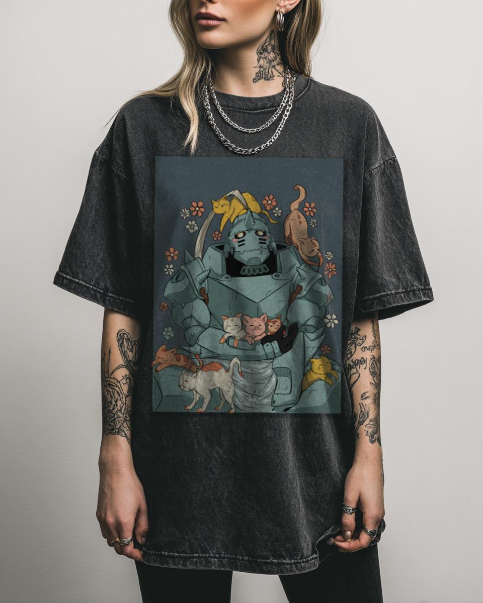 Are you a Fullmetal Alchemist fan with a soft spot for cute cats? Discover the heartwarming side of alchemy with this Alphonse Elric with Cute Cats graphic tee. This fan art design blends the iconic Fullmetal Alchemist character with adorable kawaii felines, creating a unique soft aesthetic that’s perfect for anime art lovers and cat…