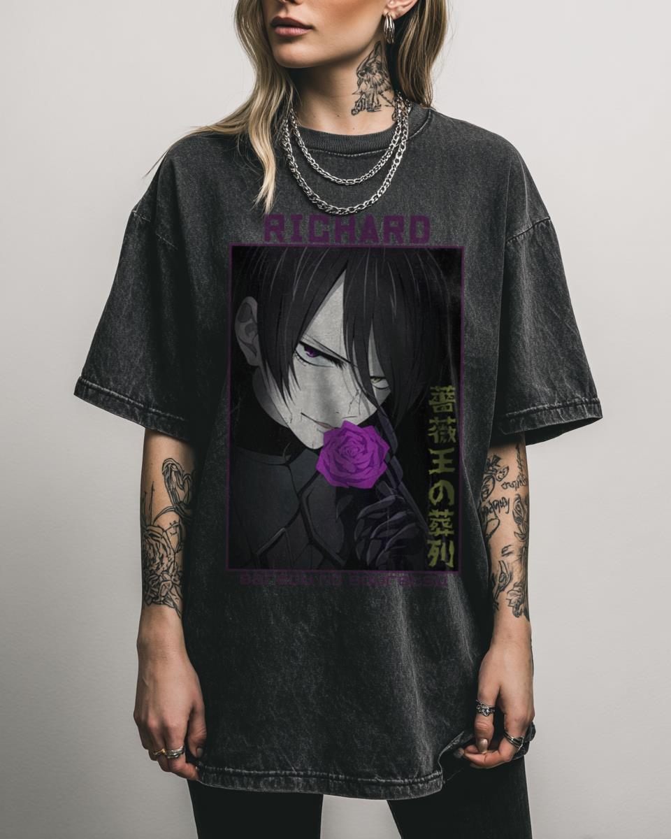 Are you captivated by the historical drama and unique artistry of ‘Baraou No Souretsu’? Dive into the world of ‘Requiem of the Rose King’ with this striking graphic tee featuring Richard. This design pays homage to the compelling character and intricate narrative of the popular anime and manga, perfect for fans who appreciate its dramatic…