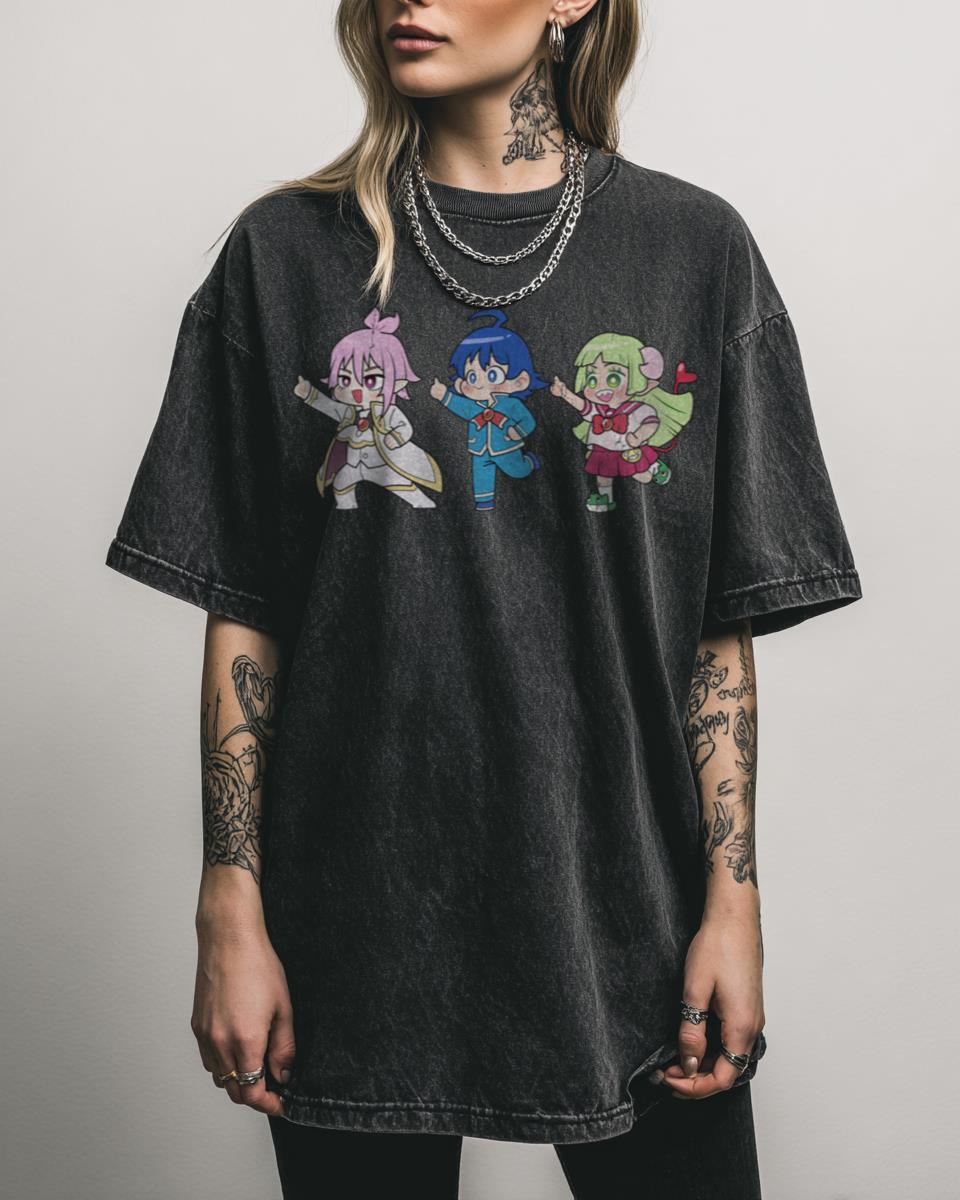 Are you ready to welcome Iruma-kun to your wardrobe? Celebrate the adorable trio from ‘Mairimashita! Iruma-kun’ with this charming chibi design, featuring Iruma, Alice Asmodeus, and Clara Valac. This shirt perfectly captures the cute, demon-school antics of ‘Welcome to Demon School! Iruma-kun’, making it an ideal piece for fans of the popular anime and manga…