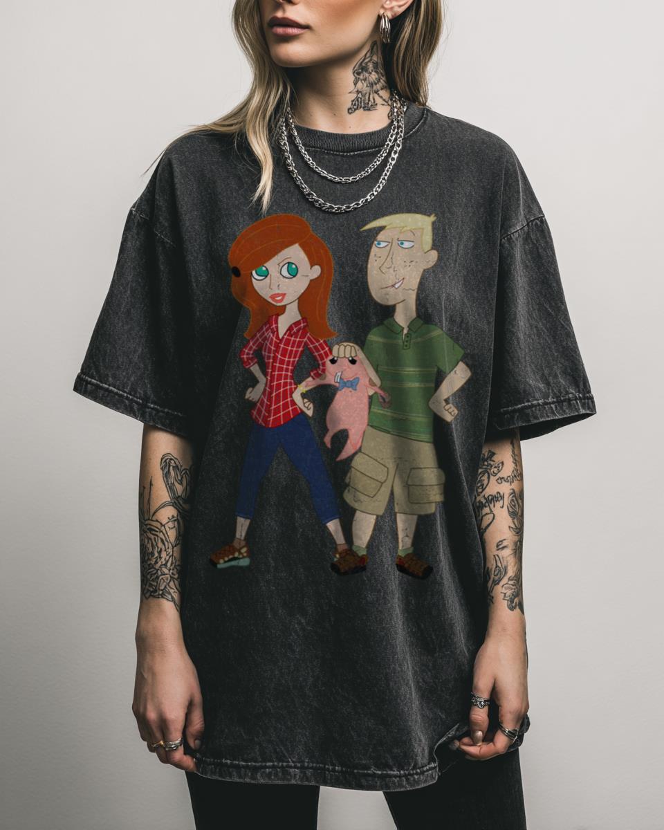 Missing the action and adventure of your favorite 2000s cartoon? Relive your childhood memories with this fun Kim Possible graphic, featuring Amy and Rory in an anime-inspired classic style. This design is a nostalgic tribute to the beloved animated series, perfect for fans who grew up with the iconic teen spy and her mole rat…
