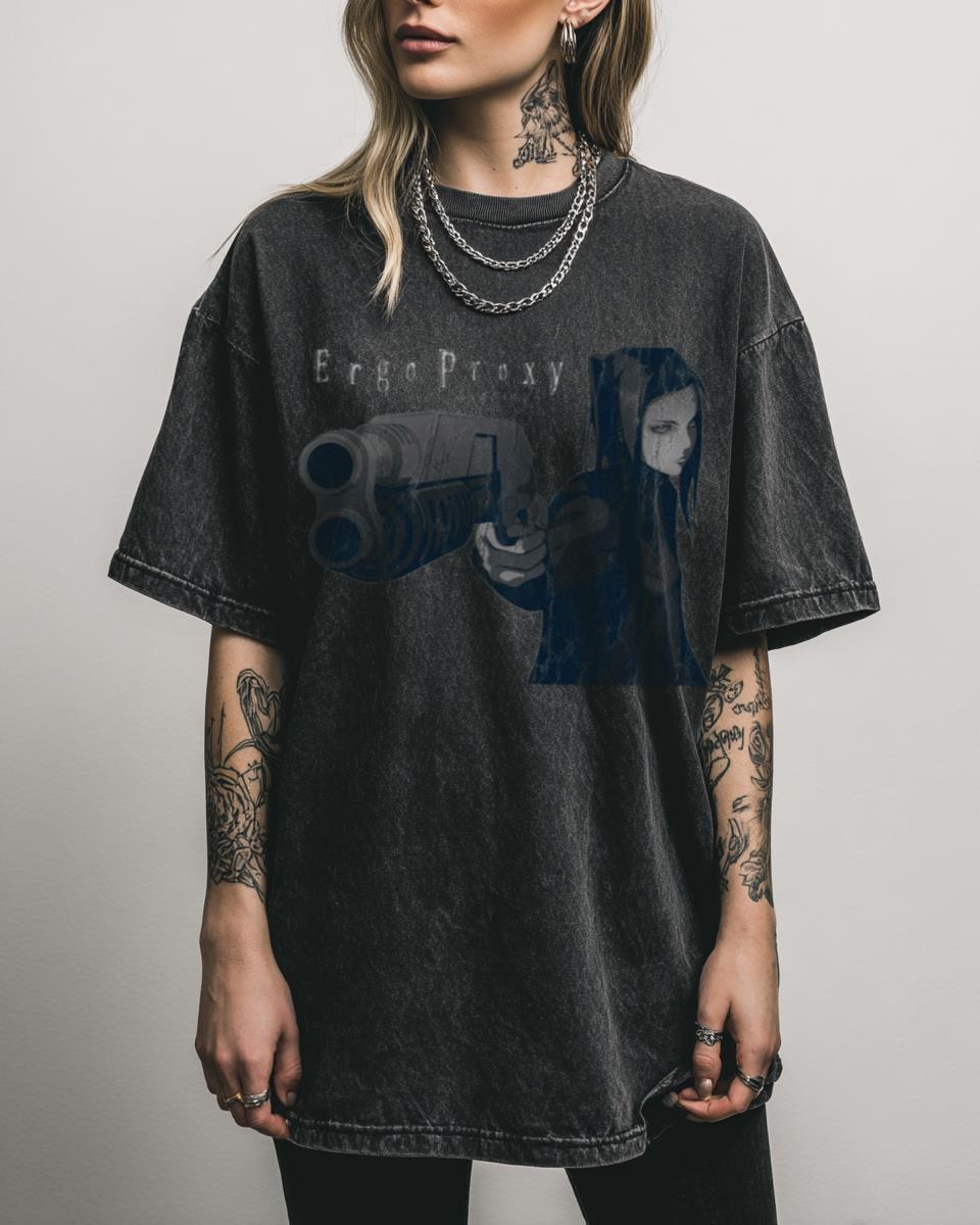 Are you drawn to the deep narratives and striking visuals of classic cyberpunk anime like Ergo Proxy? Immerse yourself in a world of advanced technology and dystopian futures with this ‘Ergo Proxy2’ graphic tee! This design captures the essence of the acclaimed Japanese anime and manga, blending sci-fi, cyberpunk, and mecha elements. Perfect for fans…
