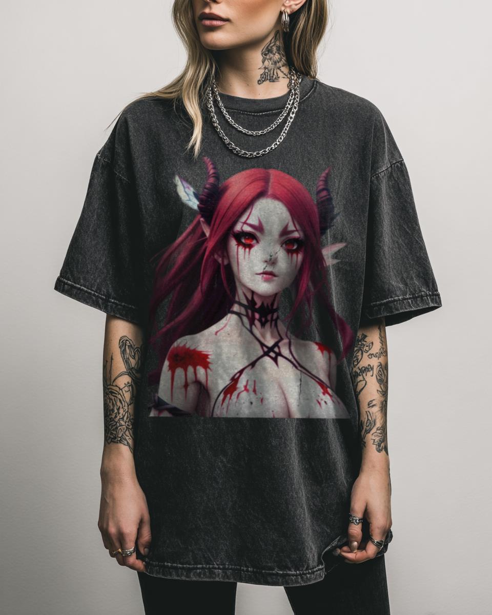 Ready to embrace your inner demon with a touch of kawaii charm? This captivating ‘Demon Anime Girl’ design features a beautiful anime girl with demonic horns and intricate tattoos, blending fantasy and a hint of dark allure. It’s a unique graphic for fans of monster girls, manga, and the edgy side of kawaii culture, with…