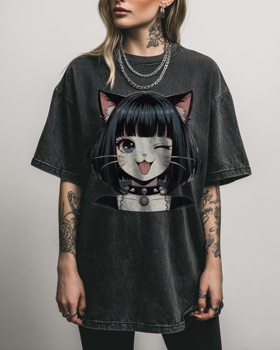 Looking for a touch of adorable charm and playful anime style? Express your cute side with this ‘Winking Manga Cat Girl’ T-shirt! Featuring an irresistibly kawaii anime girl with cat ears and a charming wink, this design is perfect for fans of Japanese animation, manga, and all things cute. It’s a fun and stylish way…