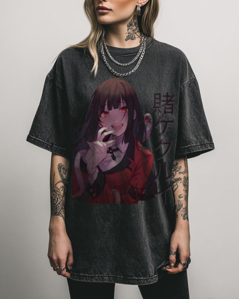 Are you a high-stakes gambler ready to risk it all? Step into the thrilling world of Hyakkaou Private Academy with this captivating Yumeko Jabami t-shirt from Kakegurui. This anime graphic design perfectly captures the intense and unpredictable spirit of the iconic character, making it a must-have for fans of the Japanese manga series. Embrace the…