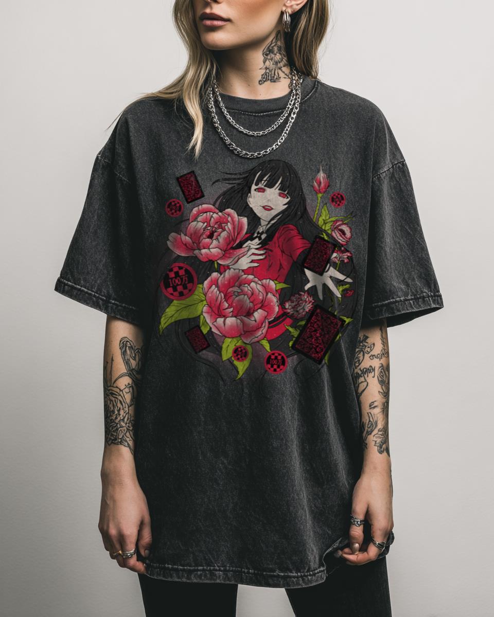 Are you captivated by the thrill of high stakes gambling? Embrace the alluring intensity of Yumeko Jabami with this “Yumeko’s Blossom” Kakegurui T-shirt. This design captures the iconic anime girl in a beautiful, blossoming style, perfect for fans of the popular manga and anime series. Show your love for the ultimate gambler of Hyakkaou Private…