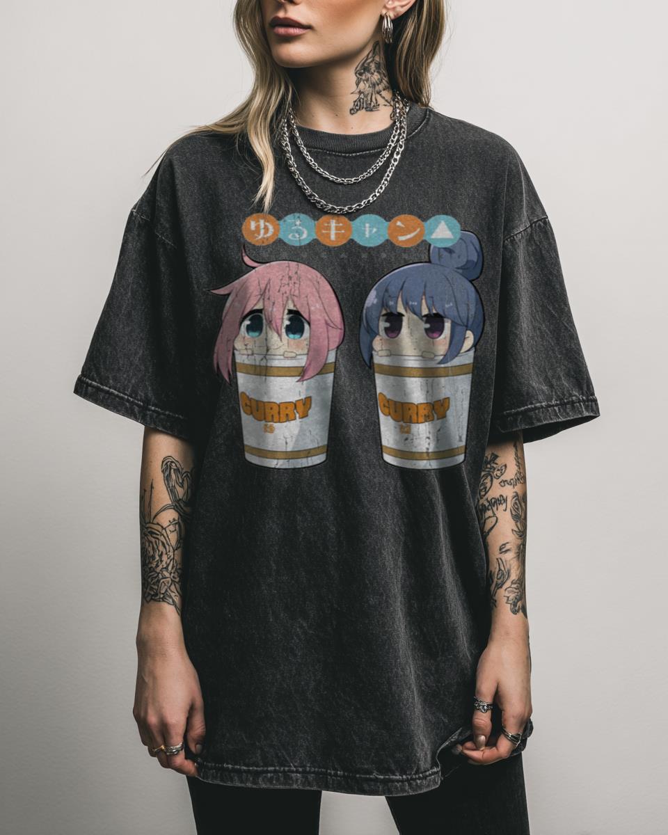 Craving a warm curry by the campfire, just like in Yuru Camp? Celebrate the cozy culinary delights of ‘Yuru Camp’ with this adorable ‘Curry Cup’ T-shirt! This cute anime design features a girl enjoying a delicious curry, a beloved staple of the Laid-Back Camp series. It perfectly captures the charming, relaxed atmosphere and the simple…