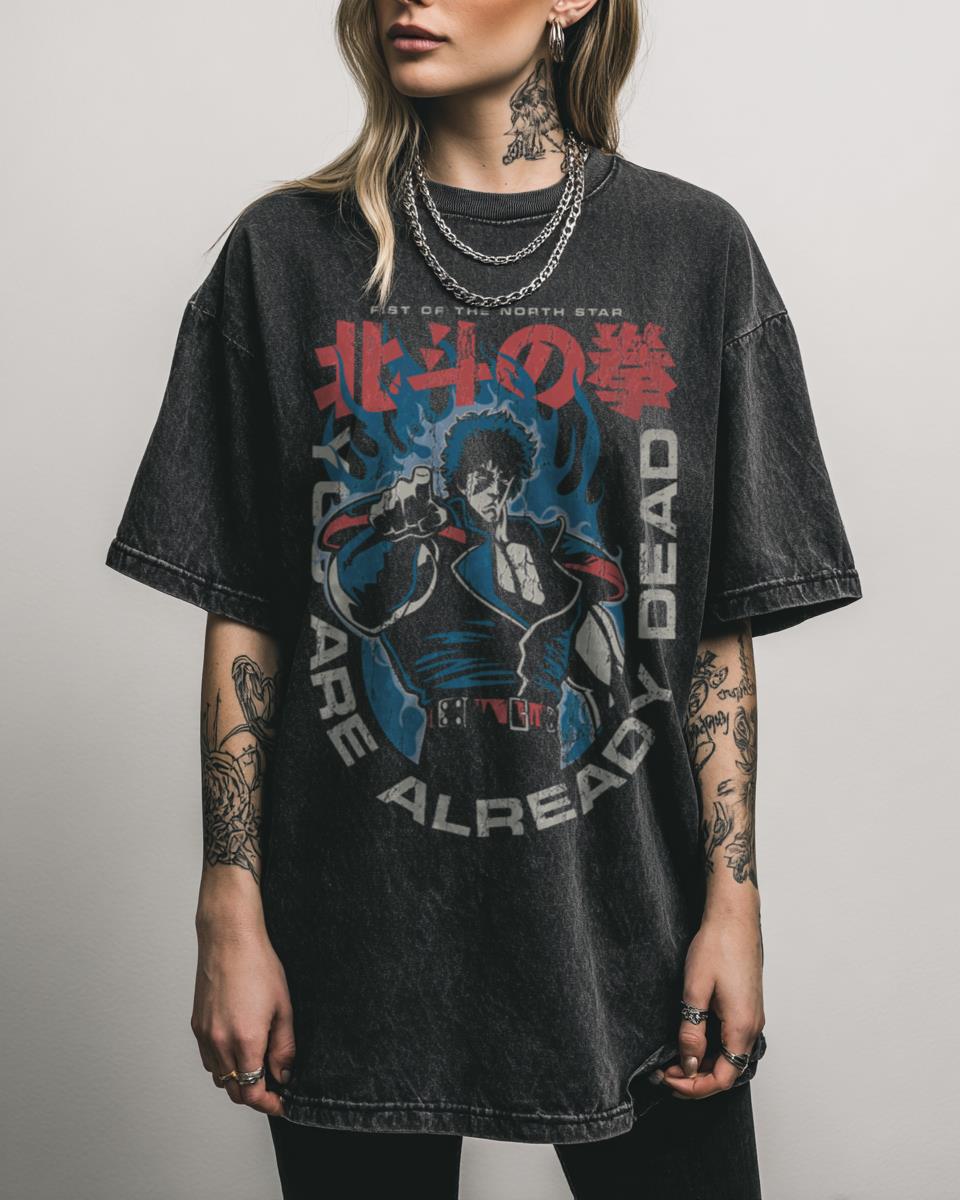 Are you ready to witness the power of Hokuto Shinken? Unleash your inner Kenshiro with this classic ‘You are DEAD’ design from Fist of the North Star! This artwork perfectly captures the intense, retro style of 70s anime and manga. A must-have for fans of Hokuto No Ken, Kenshiro, and the legendary post-apocalyptic martial arts…