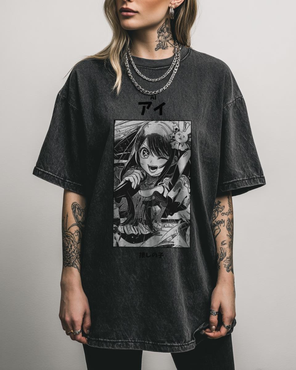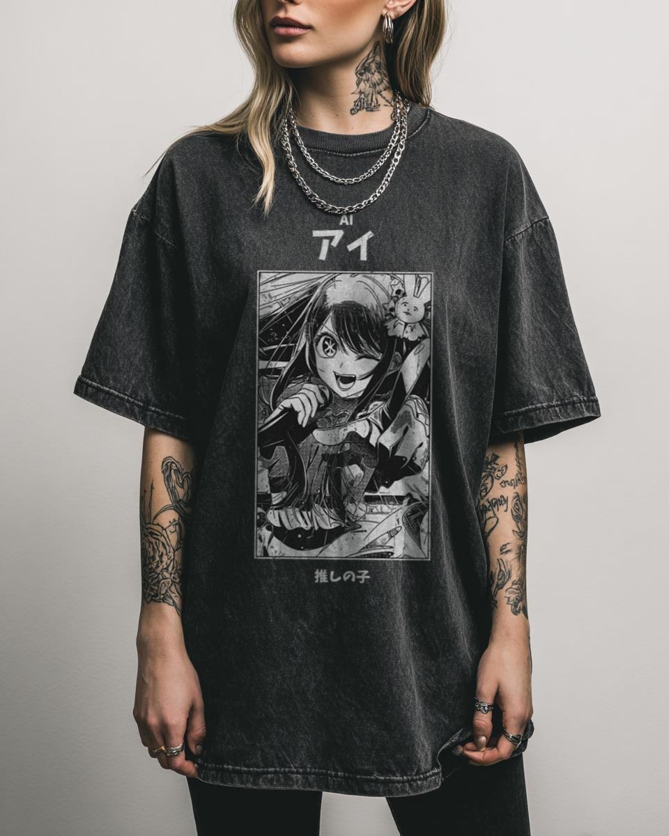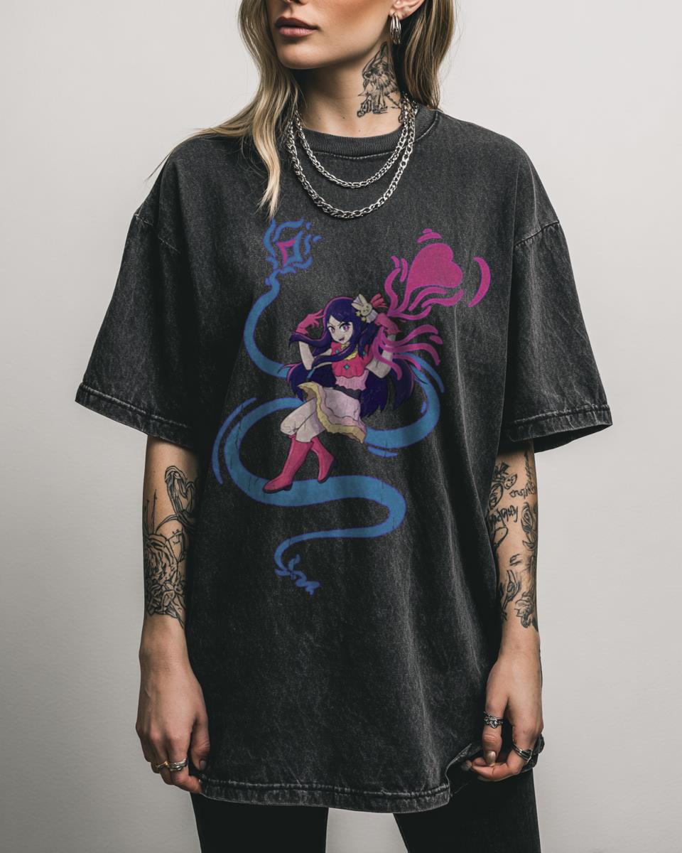 Show your love for the brightest star with this Ai Hoshino fan art tee! This “Ai Hoshino Oshi no ko” T-shirt features a beautiful fan art design of the iconic idol from the Oshi No Ko anime and manga series. Perfect for dedicated fans who appreciate the captivating story and characters. This tee is a…